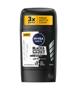 Pieštukinis antiperspirantas. Apsaugo nuo baltų žymių ant juodų drabužių ir geltonų dėmių ant baltų drabužių.