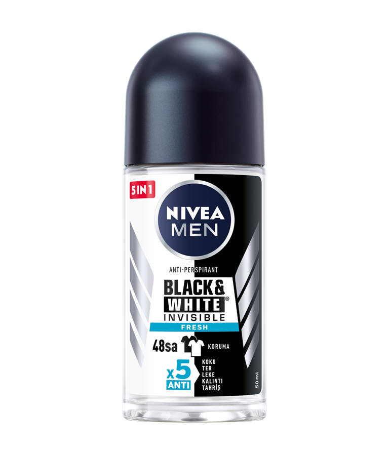 Vienas antiperspirantas – penkeriopa apsauga: NIVEA MEN „Black & White“. Sukurti ekspertų, mūsų dezodorantų linijos produktai patikimai apsaugo tave nuo prakaitavimo.