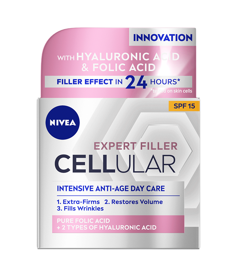 CELLULAR EXPERT FILLER INTENSYVAUS POVEIKIO DIENINIS KREMAS NUO SENĖJIMO POŽYMIŲ SU GRYNA FOLIO RŪGŠTIMI IR HIALURONO RŪGŠTIMI