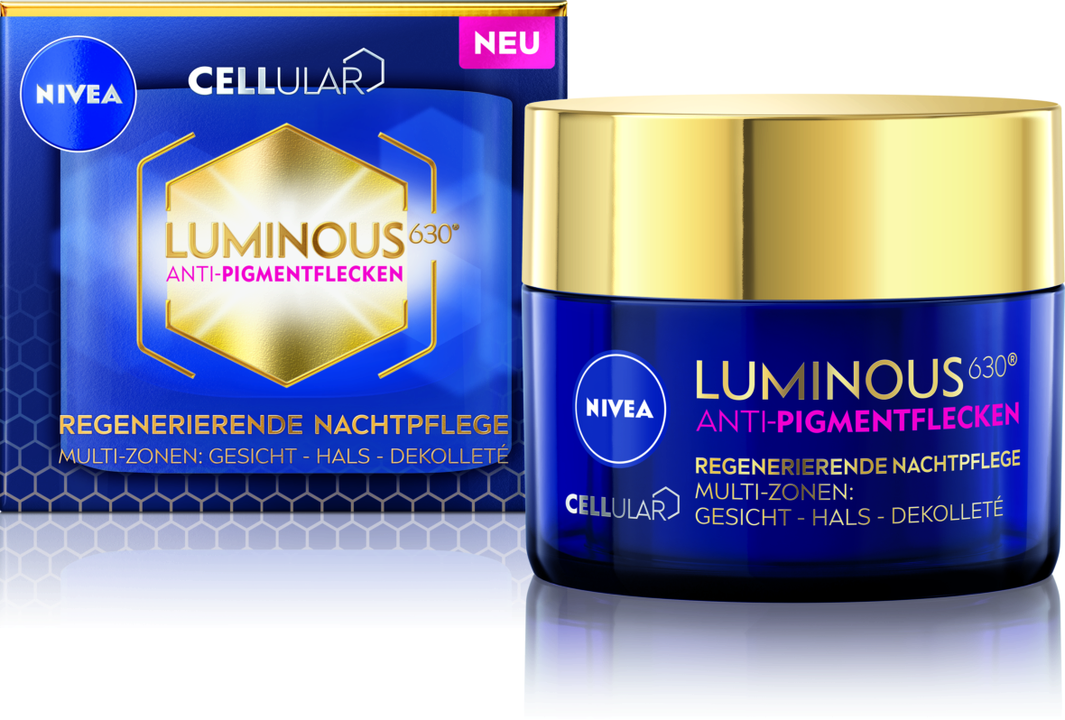 NIVEA CELLULAR LUMINOUS630 ANTISPOT NAKTINIS KREMAS NUO PIGMENTINIŲ DĖMIŲ VEIDUI, KAKLUI IR DEKOLTĖ ZONAI PASTEBIMAI ŠVIESESNĖS PIGMENTINĖS DĖMĖS PER 4 SAVAITES