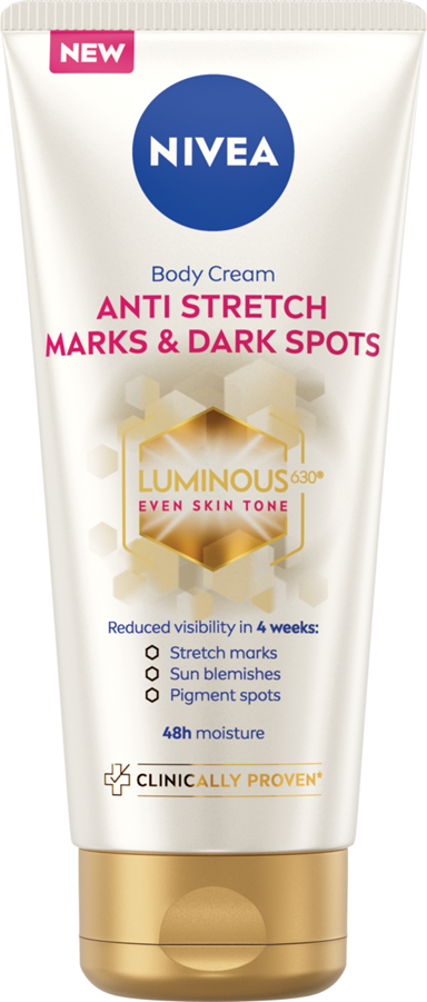 NIVEA LUMINOUS630® KŪNO KREMAS NUO STRIJŲ, PIGMENTINIŲ DĖMIŲ IR SAULĖS DĖMIŲ