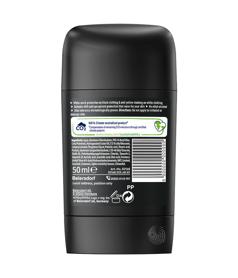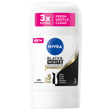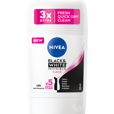 Pieštukinis antiperspirantas. Apsaugo nuo baltų žymių ant juodų drabužių ir geltonų dėmių ant baltų drabužių.