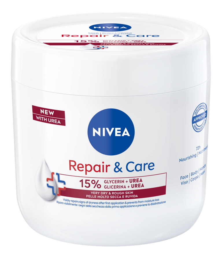 NIVEA REPAIR & CARE KREMAS VEIDUI, KŪNUI IR RANKOMS SU 15% GLICERINO IR ŠLAPALAS