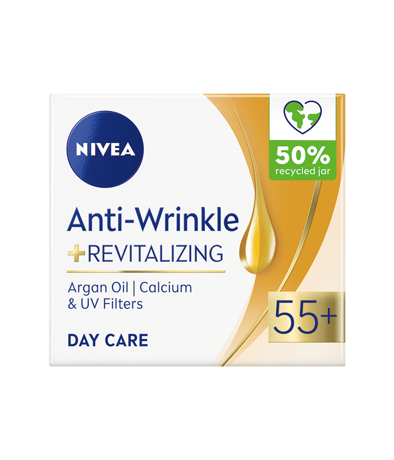 REGENERUOJANTIS DIENINIS KREMAS NUO RAUKŠLIŲ 55+. Su argano aliejumi, kalciu ir UV filtrais: