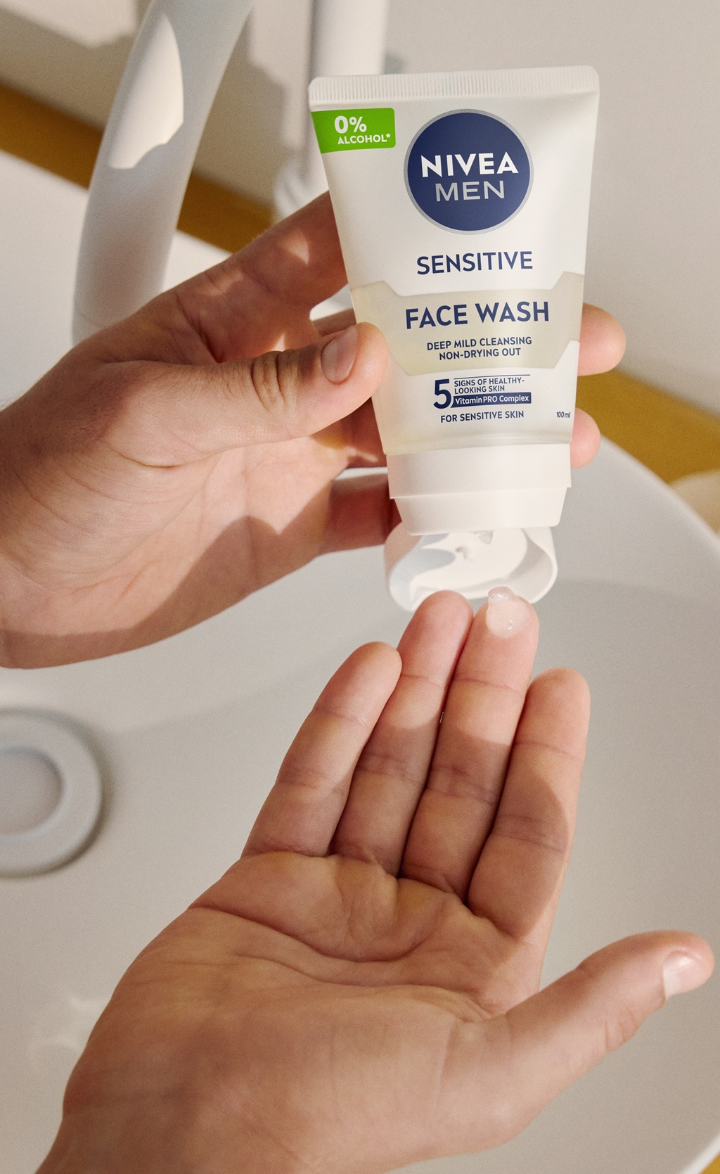 Patarimas geresniems rezultatams: pirmiausia nuvalykite odą su NIVEA Men Skin Energy Face Wash Gel ir kartokite ryte bei vakare.